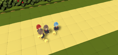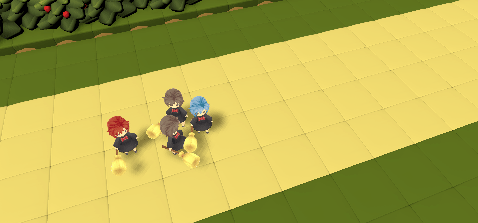 플레이어 캐릭터는 여러 객체들이 존재하였으며 캐릭터들이 하나의 구성으로 인식될 수 있도록 캐릭터가 많이 밀집한 위치에 더욱 포커싱 되어야 했다.