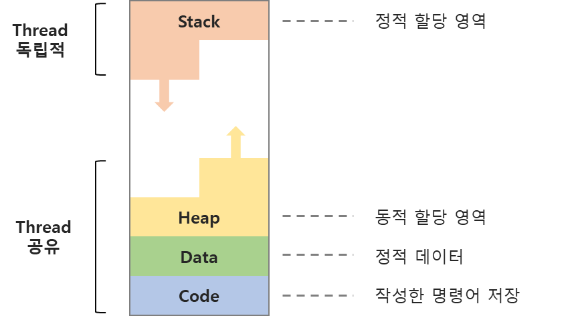코드, 데이터, 힙을 공유