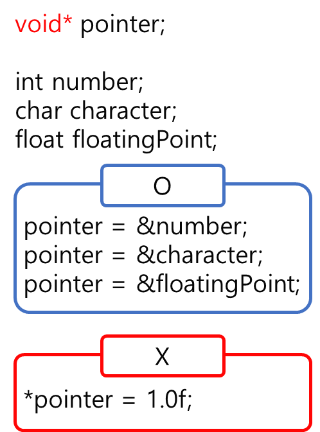 때문에 void 타입의 포인터는 어떤 타입이든 포인터로 주소값을 받을 수 있지만,