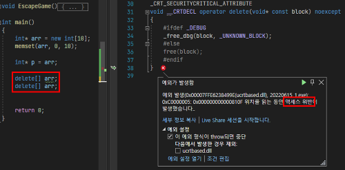 이미 반환한 메모리를 다시 반환하는 경우 오류가 발생할 수 있다.