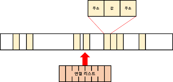 요소는 연결된 다른 요소의 주소를 데이터로 갖고 있으며, 주소 데이터를 통해 연결된 다른 요소를 찾을 수 있는 구조