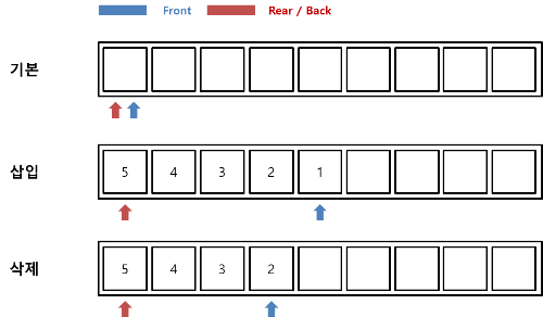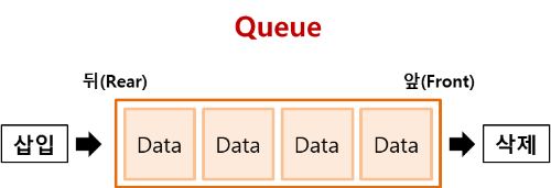 삽입이 일어나는 쪽을 뒤(Rear), 삭제가 일어나는 쪽을 앞(Front)라고 한다.