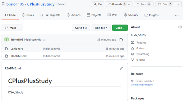 Push를 완료했다면 gitHub에 Commit & Push 한 내용이 추가된 것을 확인할 수 있다.