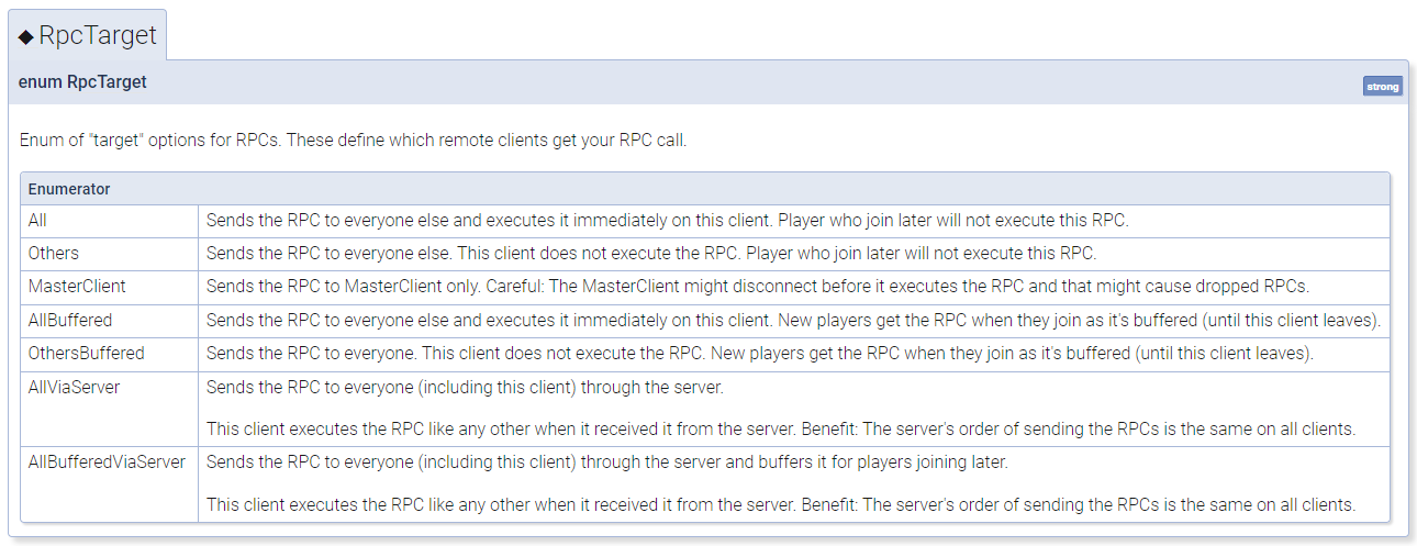 | LoadLevel() | 방에 있는 모든 클라이언트를 특정 씬으로 이동시킨다. |