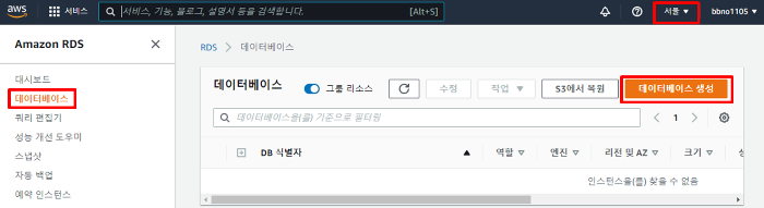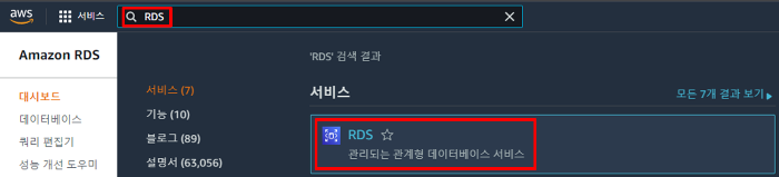 RDS를 검색하여 Amazon RDS페이지에 접속한다.