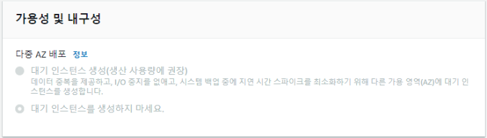 대기 인스턴스 생성은 2배의 공간을 사용하는 만큼 비용도 증가하여, 프리티어 설정에서는 제공하지 않는다.