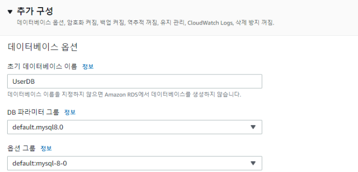 데이터베이스 옵션에 초기 데이터베이스의 이름을 등록한다.