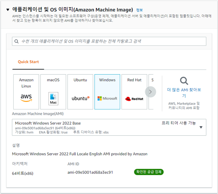 가상 서버에서 사용할 OS를 선택한다.