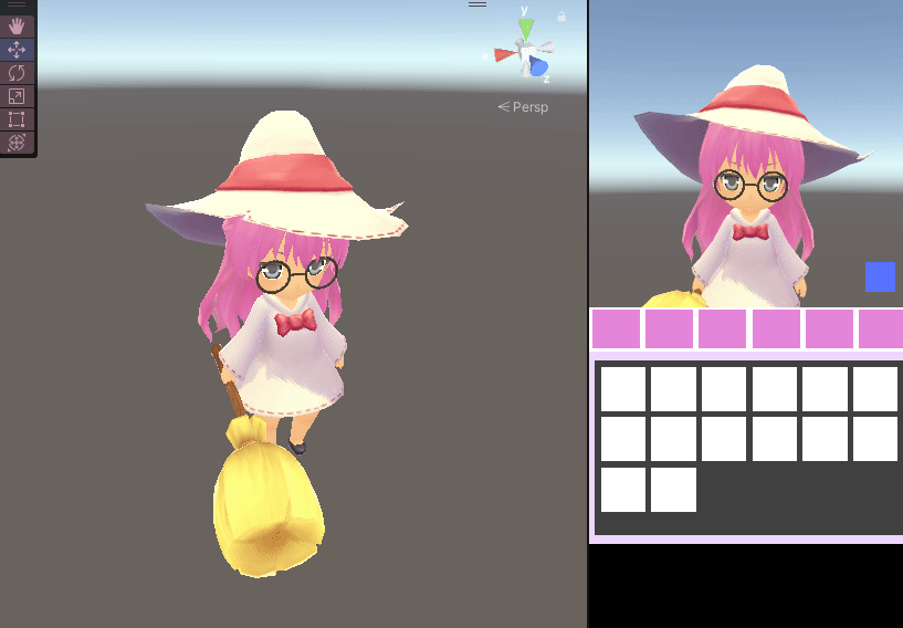 캐릭터의 모습을 관찰하기 용이하도록 스와이프를 통한 캐릭터의 회전을 가능하게 하였으며, 부드러운 움직임을 위하여 스와이프 속도에 따른 관성값을 적용시켰다.