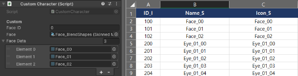 파츠에 대한 정보는 ID를 기준으로 Unity에 연결된 정보와 DataTable의 정보를 통하여 불러오고 있다.